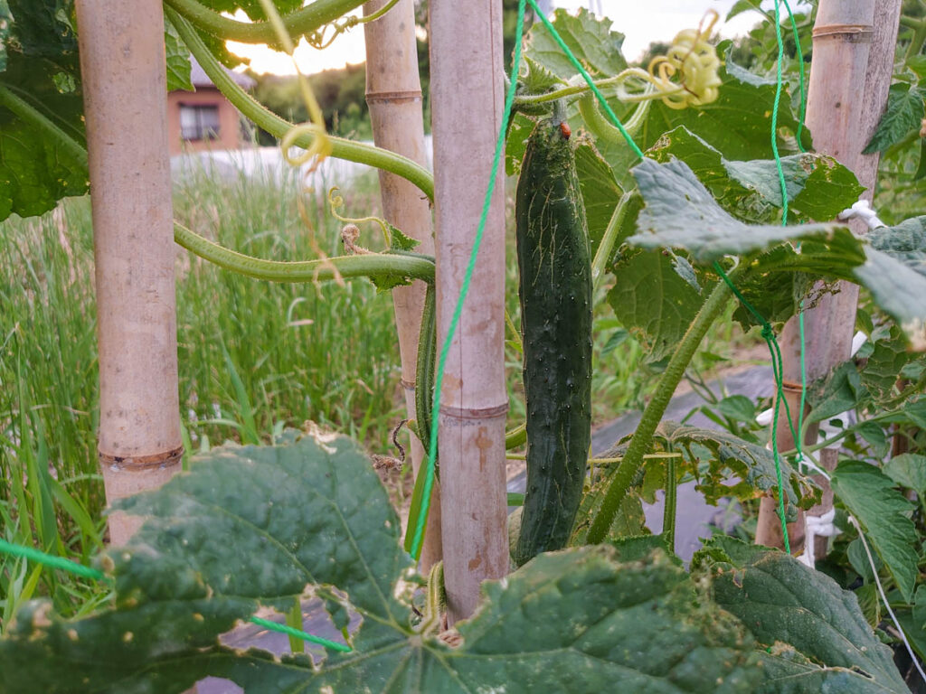 きゅうりは3回目の収穫を迎えました。苗2つそれぞれ1本ずつの計2本。青臭さや苦味、灰汁は一切なく、持ち帰ったところ早速妻と2歳の子供の奪い合いが始まり、数分後にはお腹の中でした。