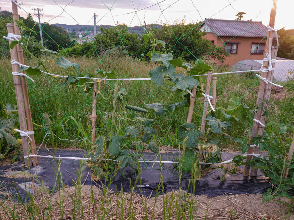 初期の葉がウリハムシにかなりやられたのでどうなるかと思っていましたが、成長するにつれてやられなくなってきたことと、ウリハムシの大量発生時期を乗り切ったようで順調に育っています。