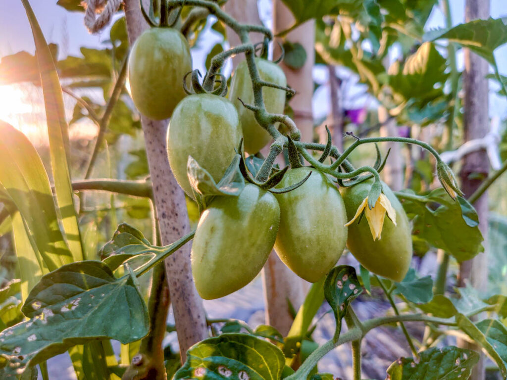 トマトは日に日にわかるぐらい伸びています。トマトも3段目が実っています。かなり重そう。
